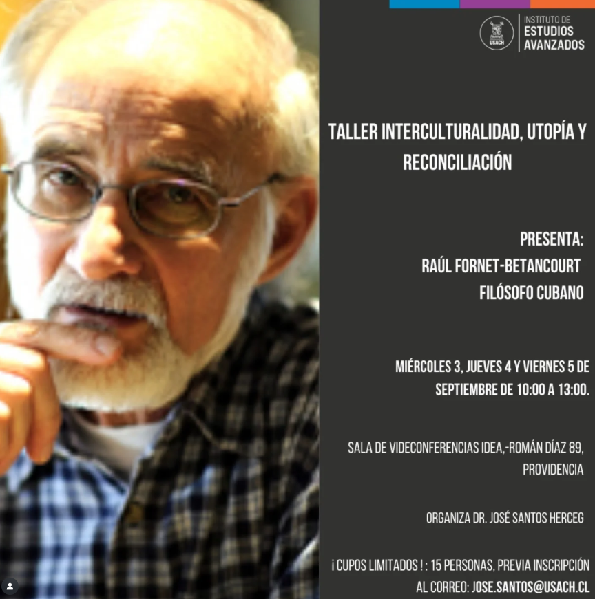 El Instituto de Estudios Avanzados (IDEA) te invita a un espacio de conversación con el reconocido filósofo cubano Raúl Fornet-Betancourt, uno de los máximos representantes de la Filosofía de la Liberación y pionero de la Filosofía Intercultural.